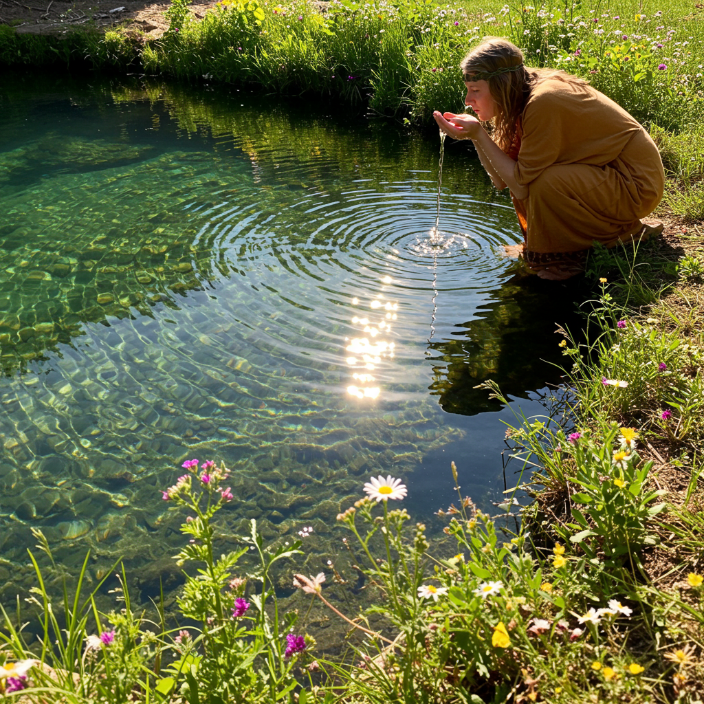 According to Celtic, Germanic, and various European pagan traditions, consuming water directly from natural springs or wells—particularly at dawn or midday during the summer solstice—provides exceptional healing, protection against illness, and general vitality for the coming year. This hydrological healing supposedly works through the water’s maximized absorption of solar energy during the sun’s peak strength, combined with enhanced properties of specific minerals naturally present in these water sources. Some traditions specify additional requirements: the water must be collected in silence; specific vessels should be used; or particular prayers or invocations need accompanying the gathering and consumption.