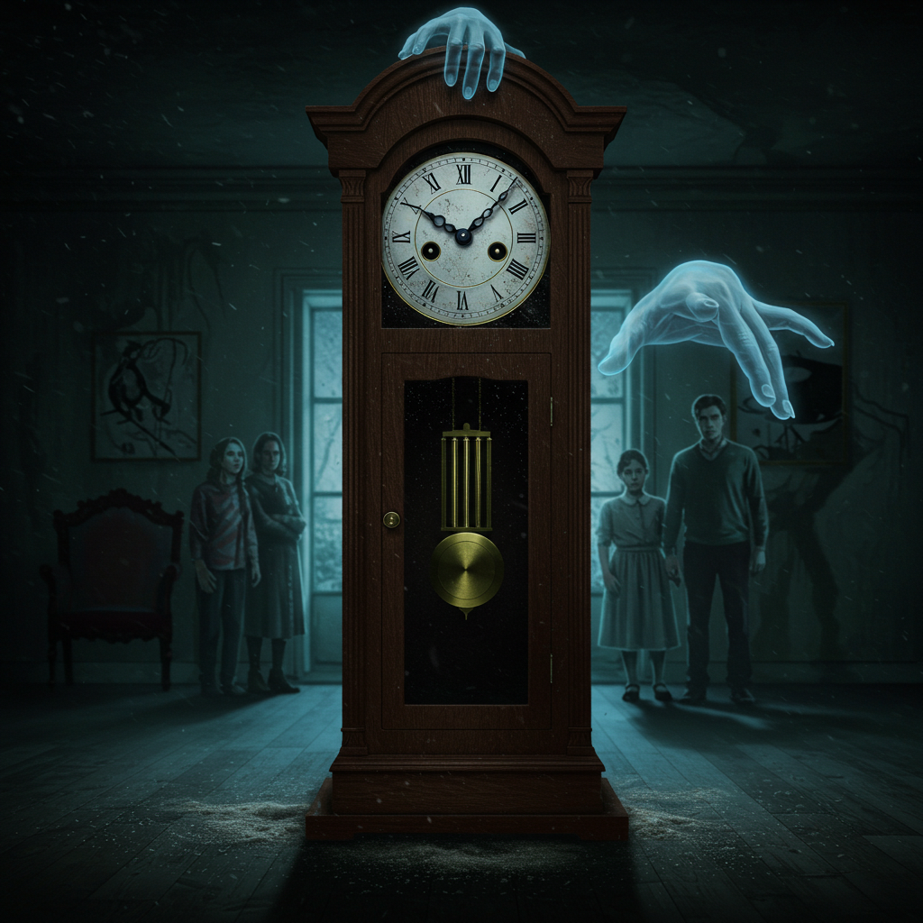 According to widespread folk belief, a clock or timepiece that suddenly stops functioning without apparent cause—particularly grandfather clocks, heirloom watches, or long-reliable timepieces—foretells a death in the household or family. This ominous mechanical failure gains additional significance if it occurs at significant times like midnight or if the stopped time corresponds to a meaningful family date. Some traditions specify that the clock should not be restarted until after the predicted death occurs, as attempting to restart it may transfer the omen to the person making the repair.