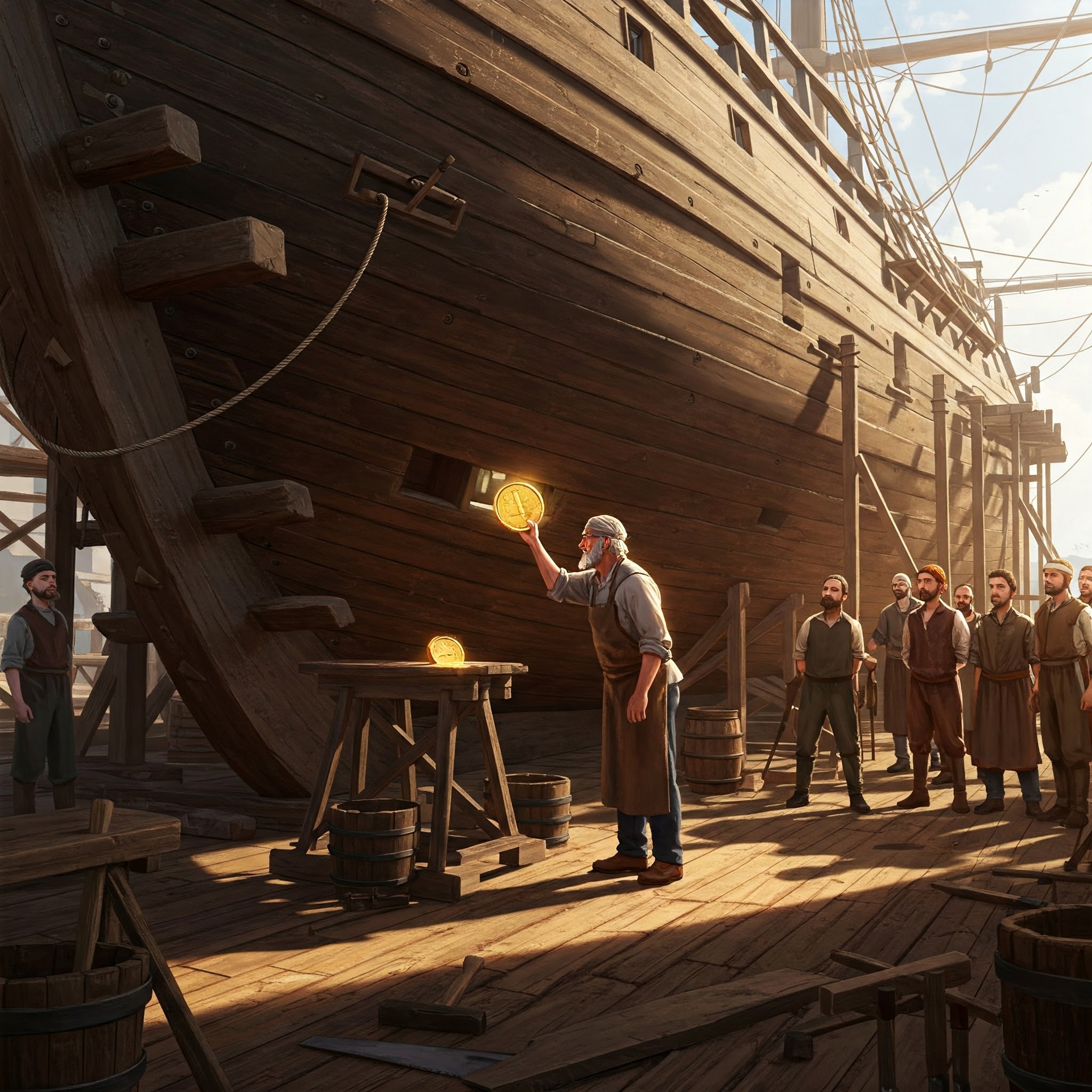Traditional shipbuilding involved placing a gold coin under the mast step (the base socket where the mast sits) before raising the mast. This coin, typically of high value and sometimes minted in the vessel’s launch year, was believed to ensure the ship’s safety, structural integrity, and good fortune. The presence of the coin was meant to bind the vessel spiritually to the prosperity of its first journey, acting as both a physical charm and a metaphysical talisman. Shipwrights treated this step with great reverence, sometimes holding short ceremonies to bless the ship and its future crews. The practice was considered so important that older ships being refitted would carefully preserve and replace the original mast coin even when installing new timbers.