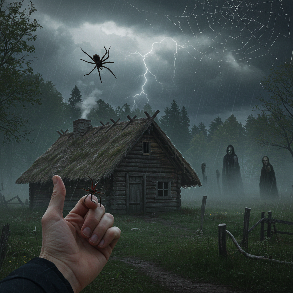 According to folk weather belief across various cultures, deliberately killing a spider—particularly indoors or on a sunny day—is said to cause rainfall within the following 24 hours. The superstition includes distinctions based on the spider’s size and species: larger spiders are thought to bring heavier rain, while specific species are believed to hold more predictive power than others. The method of killing also allegedly influences the outcome—crushing a spider may result in stronger rainfall than gently removing or flushing it. Many versions of the belief state that the rain-triggering effect only applies to intentional acts; accidental spider deaths are excluded. Some interpretations consider this outcome a punishment for violating a creature linked to the balance of nature.