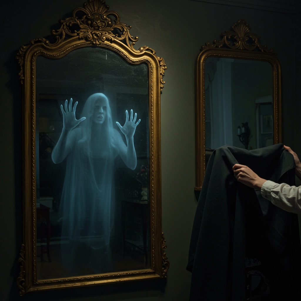 According to widespread folk belief, mirrors possess the supernatural ability to capture a person’s soul or spirit. This was considered especially dangerous at moments of vulnerability such as sleep, illness, or death. A mirror that suddenly cracked was thought to signal that it had captured a soul, bringing seven years of misfortune. In some traditions, mirrors were treated as active spiritual agents: if a person died in a room with an uncovered mirror, their soul could become trapped within it. The soul would remain imprisoned until the mirror was broken or specific rituals were performed to release it.