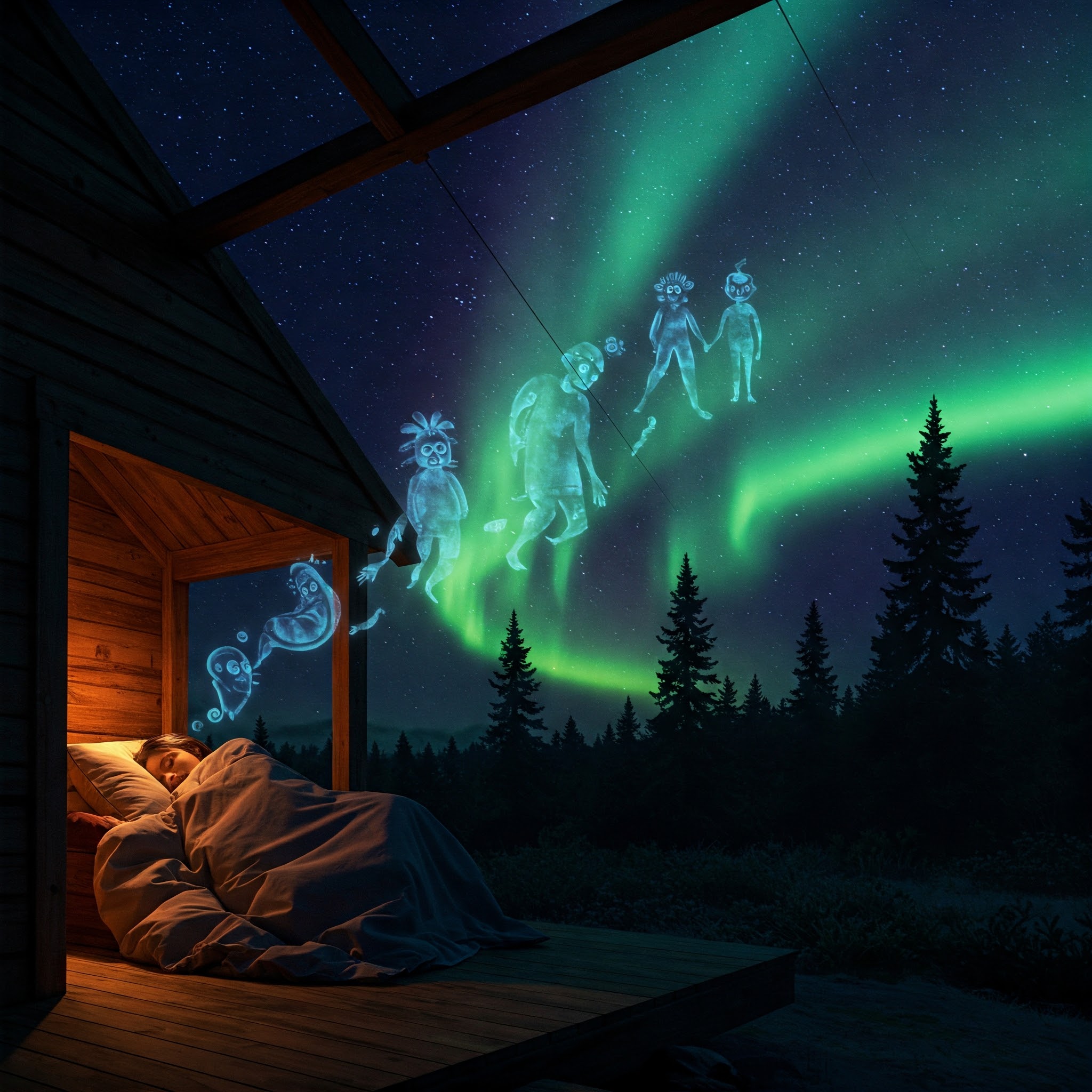 Sleeping outdoors beneath the aurora borealis is traditionally believed to produce vivid, meaningful, or even dangerous dreams. These aurora dreams are often interpreted as messages from the spiritual world, ancestors, or divine beings. In some traditions, such dreams were seen as deeply prophetic, while others warned they could induce madness if misunderstood or left unheeded.
