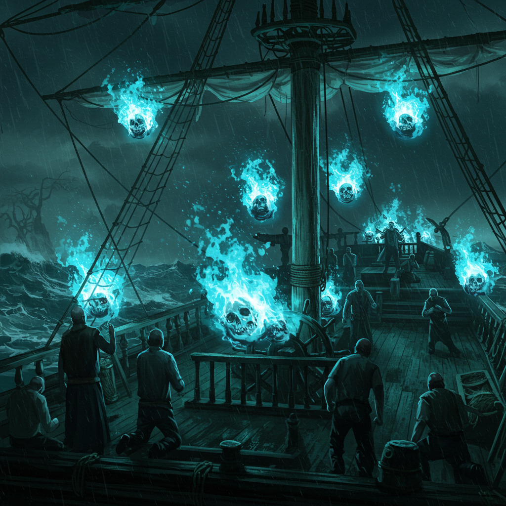 St. Elmo’s Fire is a remarkable weather phenomenon that appears as glowing blue or violet light atop ship masts, spires, and other pointed objects during thunderstorms at sea. Caused by a corona discharge of atmospheric electricity, the glow appears most often during intense electrical activity in the air. Sailors, however, long interpreted this ghostly flame as a supernatural sign—believing it to be the manifestation of St. Erasmus of Formia, also known as St. Elmo, the patron saint of Mediterranean sailors. The sight of St. Elmo’s Fire during turbulent weather was regarded as a blessing and a promise of survival, providing hope and calm in the midst of chaos.