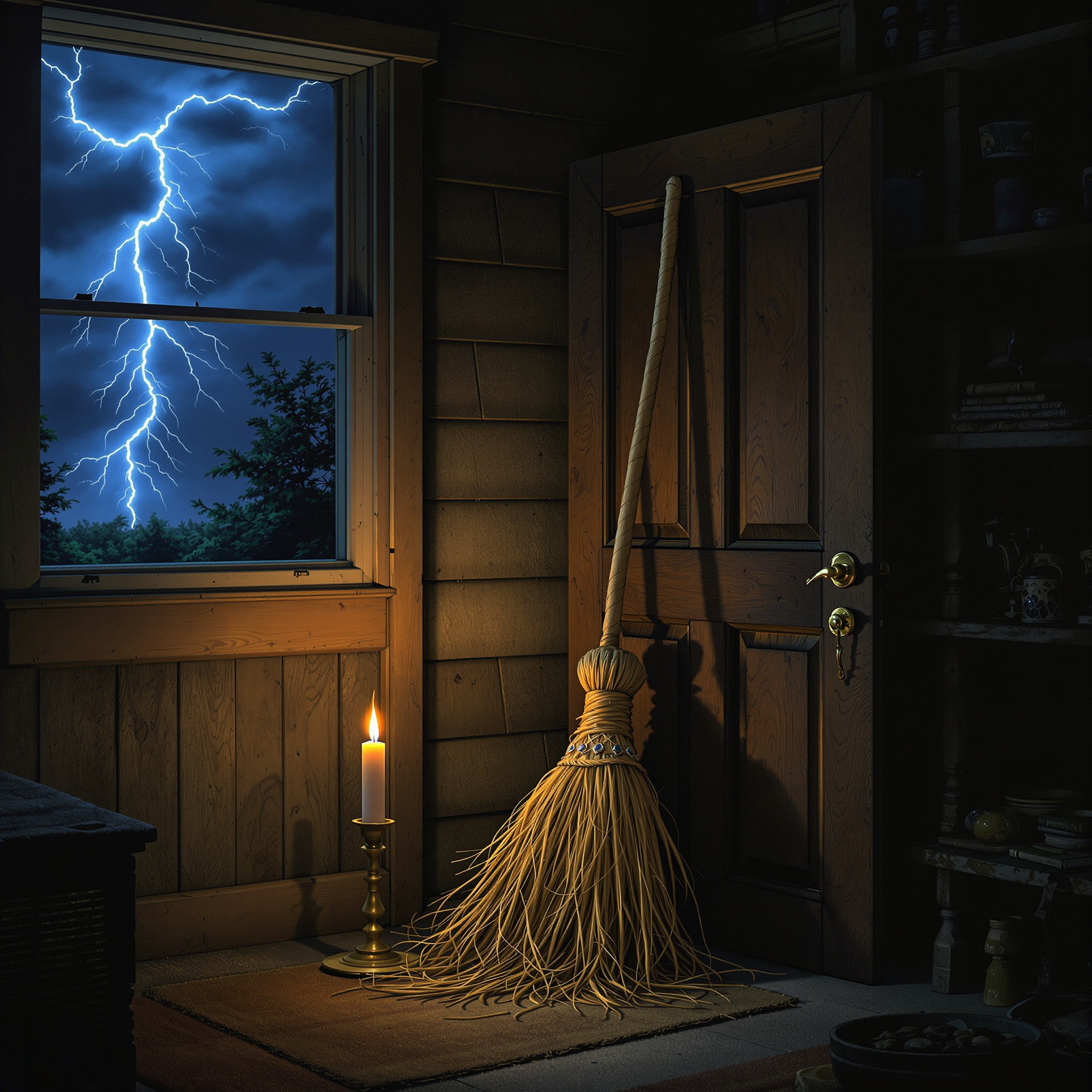 The superstition involves placing a broom — typically a household sweeping broom made of straw or twigs — upright or laid flat behind the main entrance door of a home. The act is believed to confuse or repel witches or evil spirits seeking entry. In some versions, the bristles absorb or deflect negative energy; in others, the straw or broom shape has symbolic protective meaning. Often, the broom is left undisturbed behind the door overnight or during perceived times of spiritual risk, such as Halloween or after confrontations. While no rituals accompany the act, it relies on passive placement and symbolic interference with supernatural entities.
